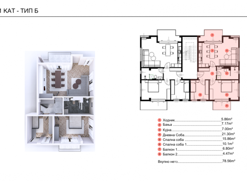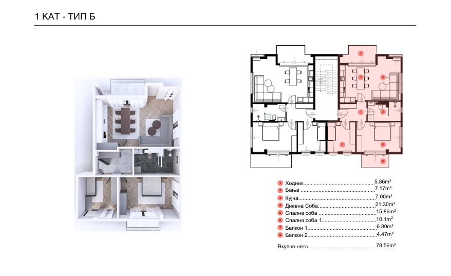 78 m² Соби