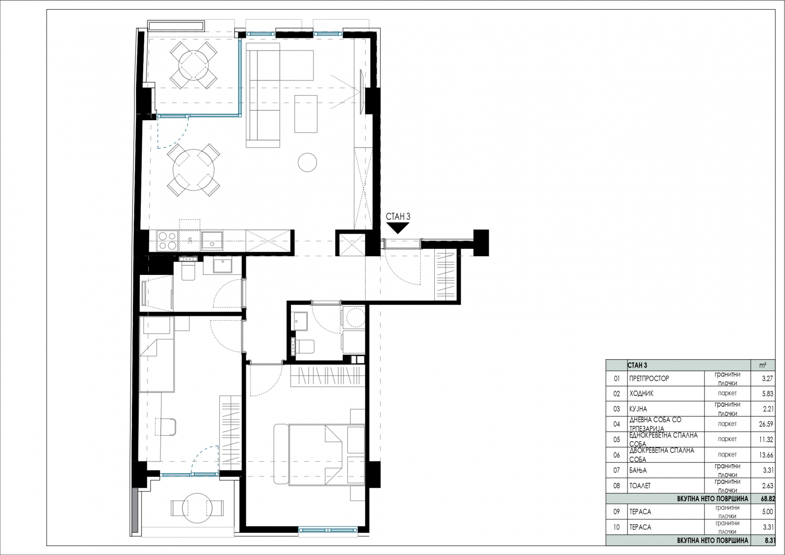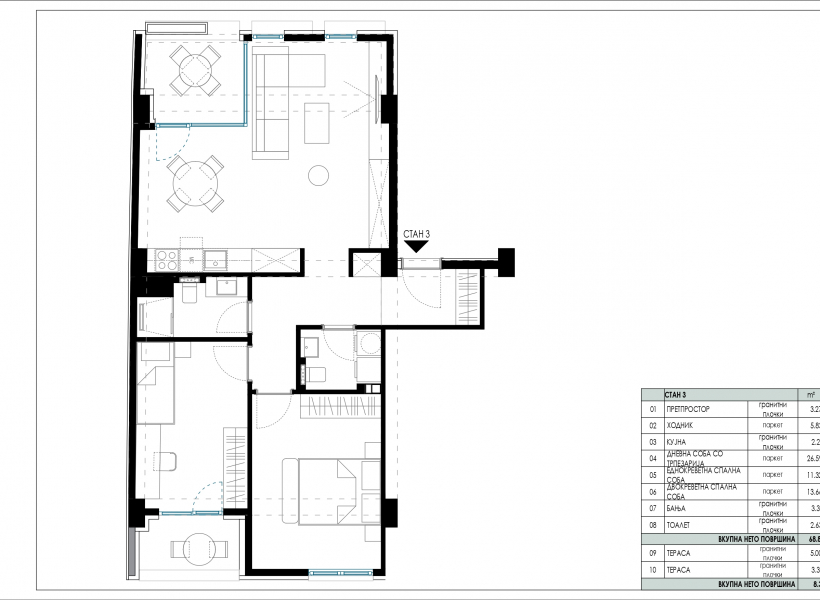 Стан 79м2 во нов резиденцијален објект