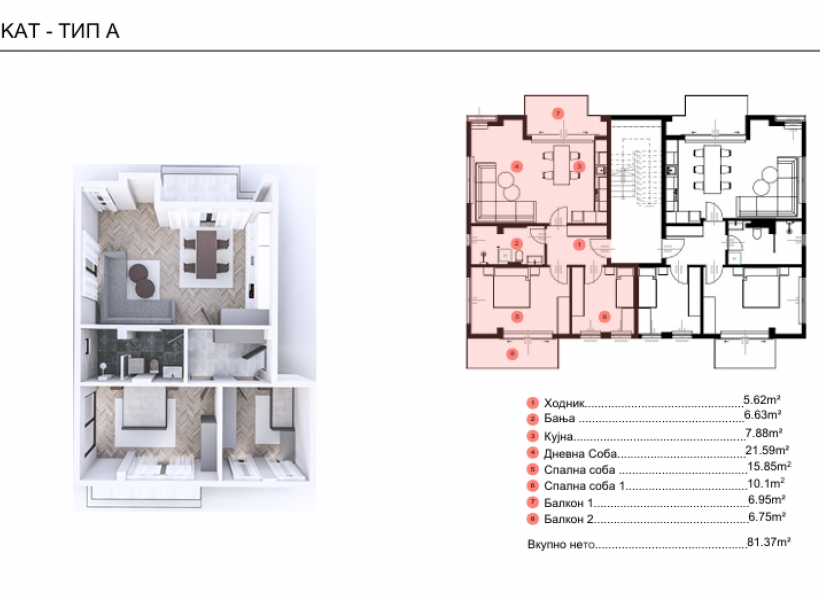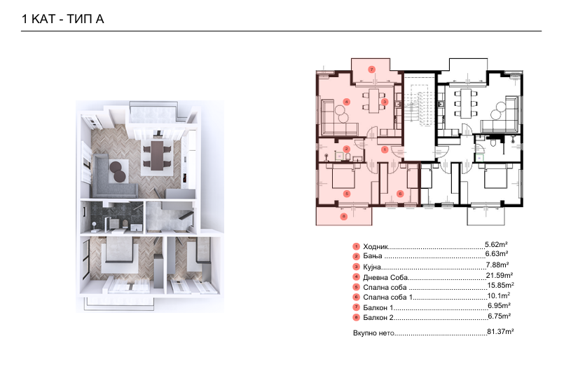 81 m² Соби