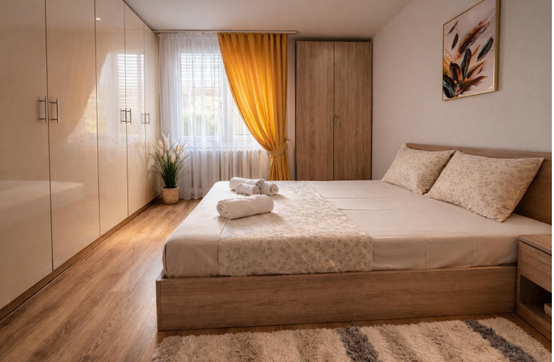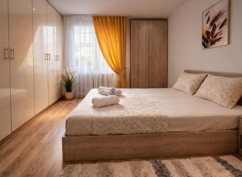 Во цената се вклучени сите сметки, неделно чистење и промена на постелнина еднаш на две недели.