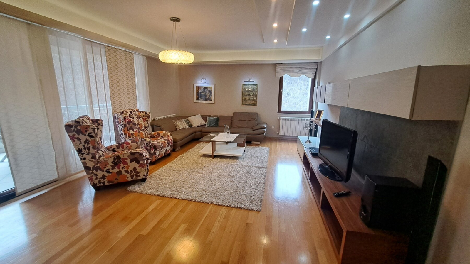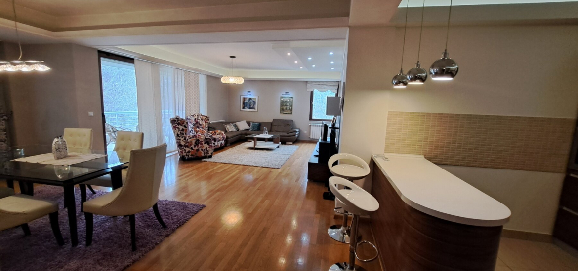Се изнајмува комплетно опремен стан со вкупна површина од 143м2 на Водно.