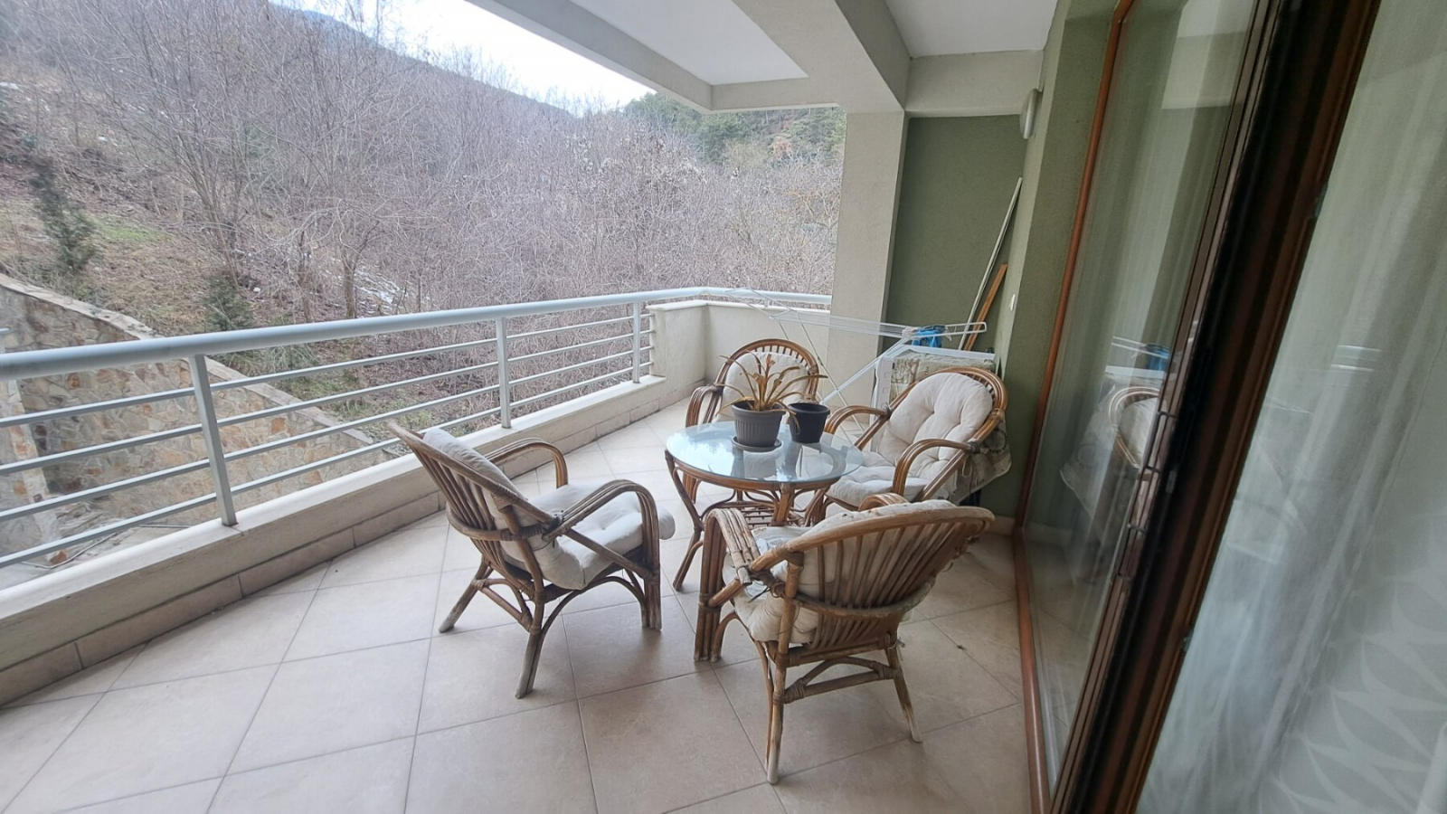 Станот располага со три спални соби, дневна соба со трпезарија, кујна, два тоалети и тераса.