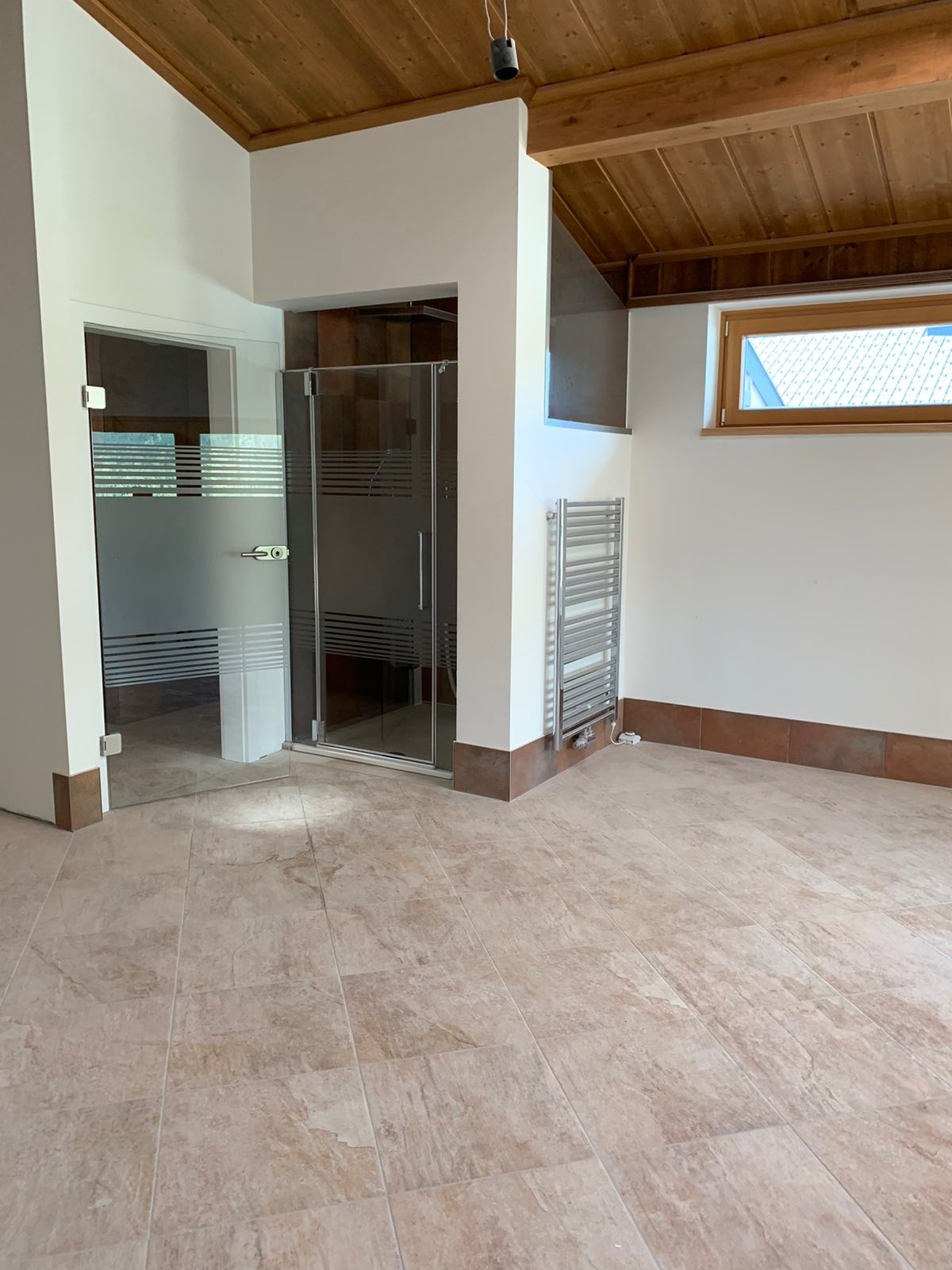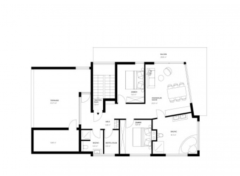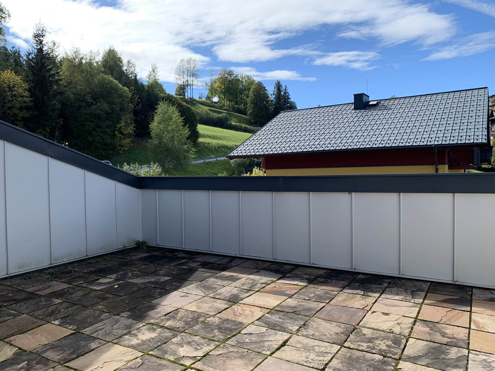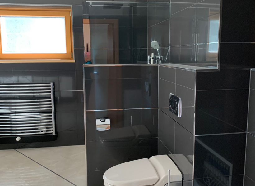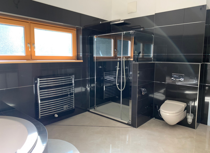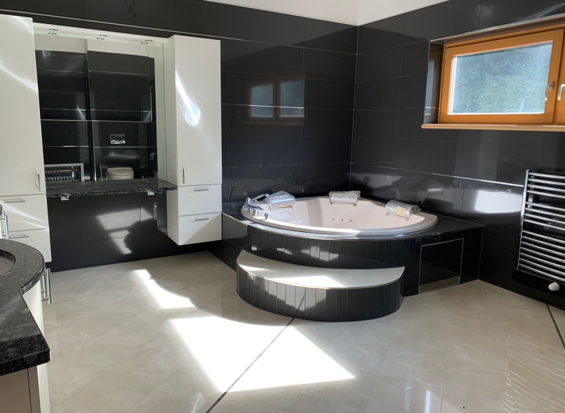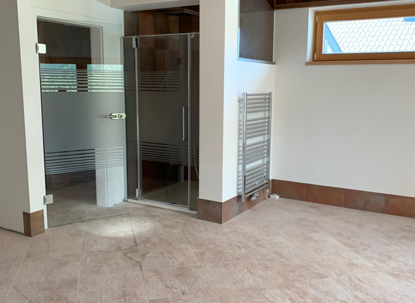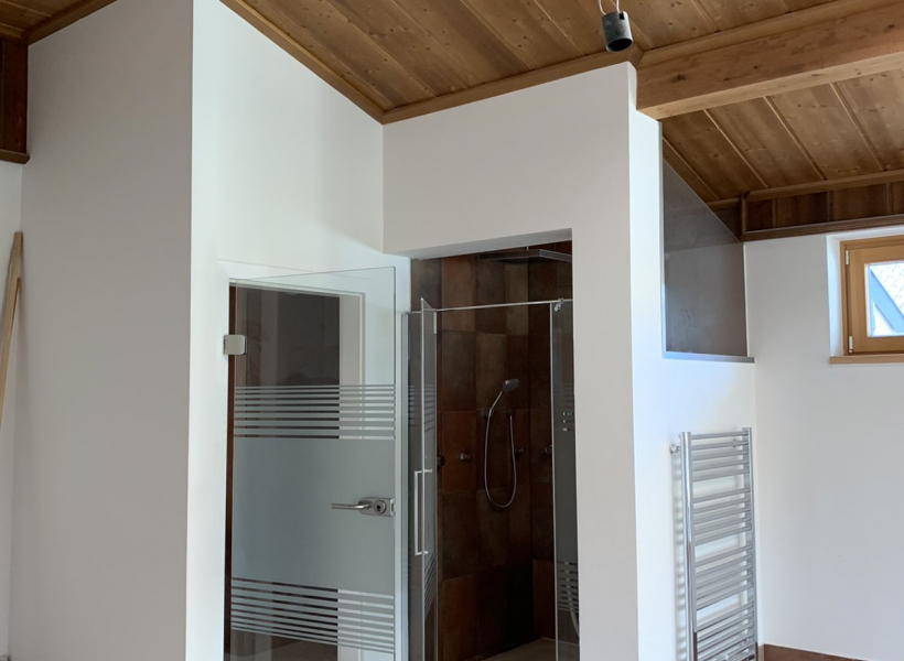 Станот е лоциран во приватна, мала зграда, расплага со 3 соби, 1 простран тоалет со џакузи и туш кабина, 1 гостински тоалет, посебен туш, 2 тераси 30м2 со прекрасен поглед на Алпите, едната тераса е погодна за летна кујна или простор за скара.