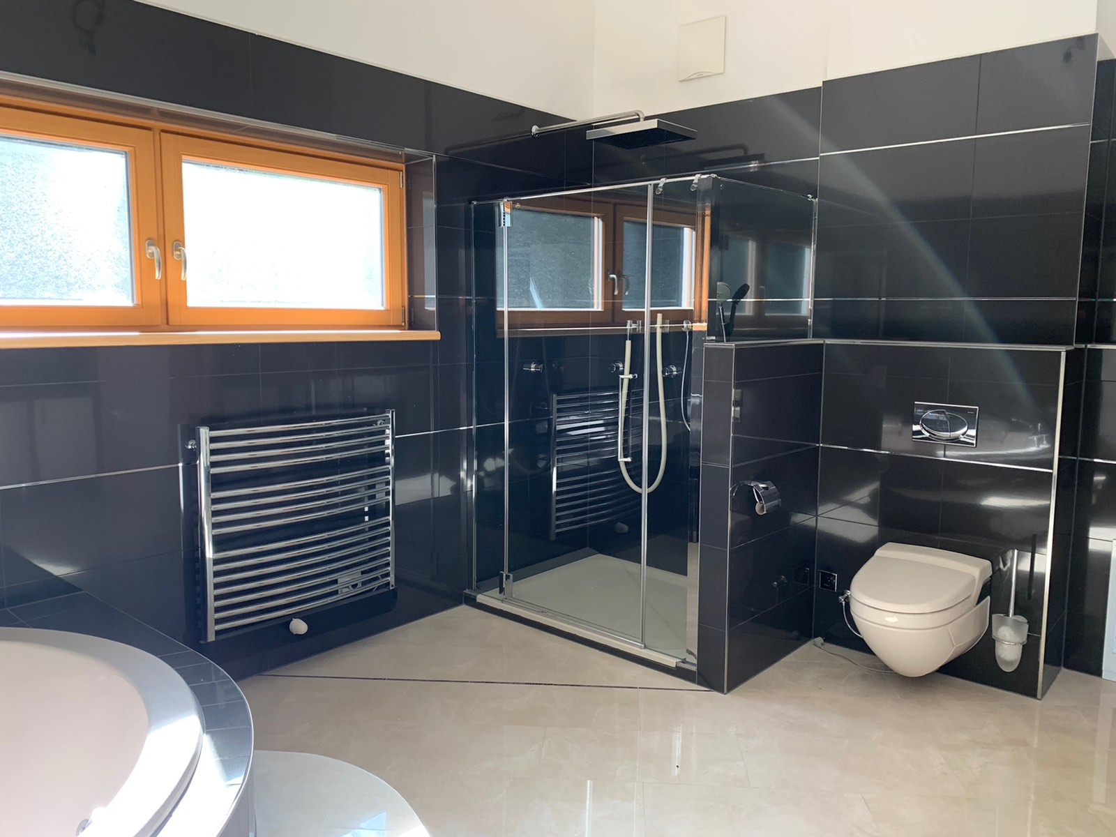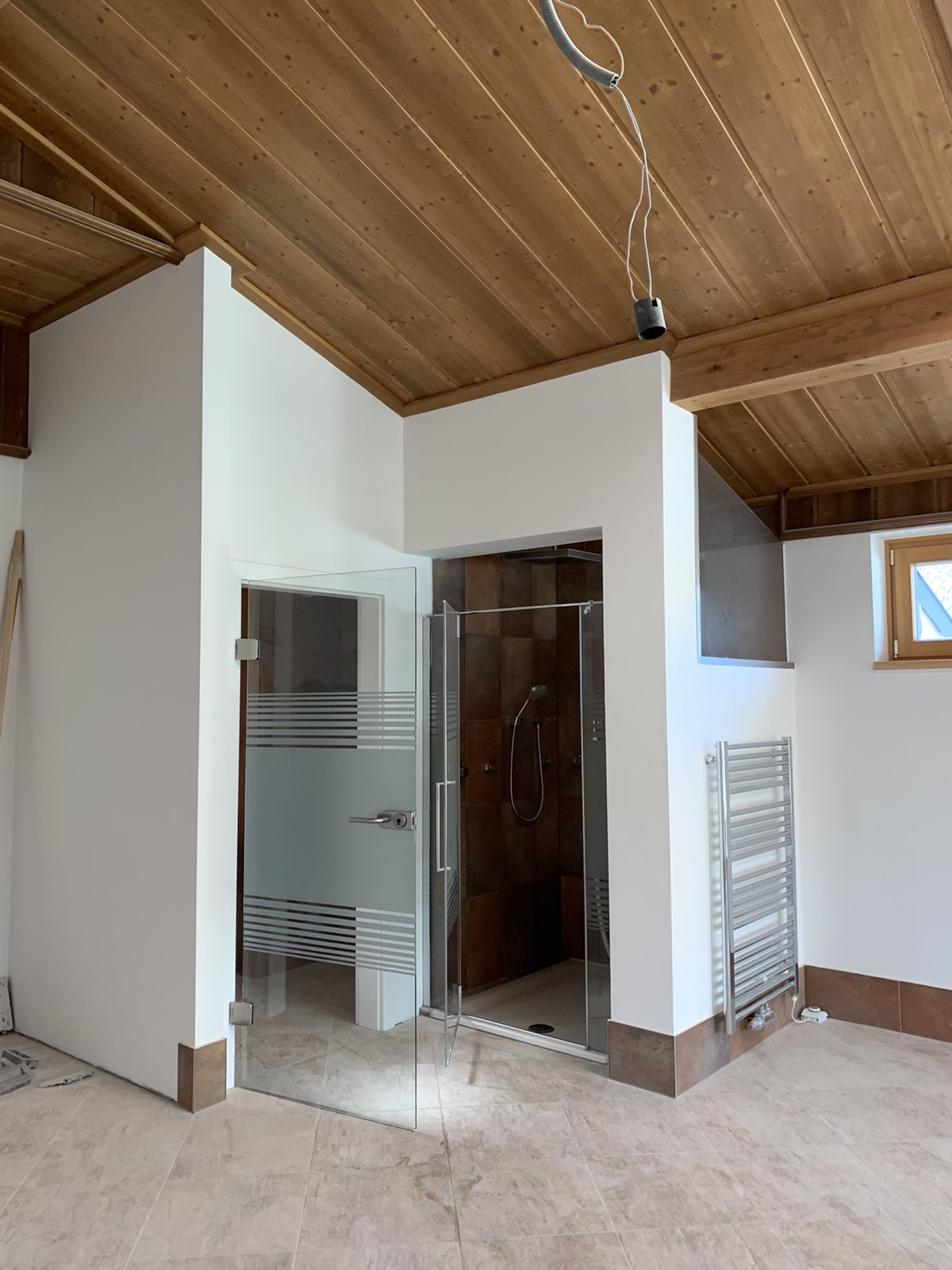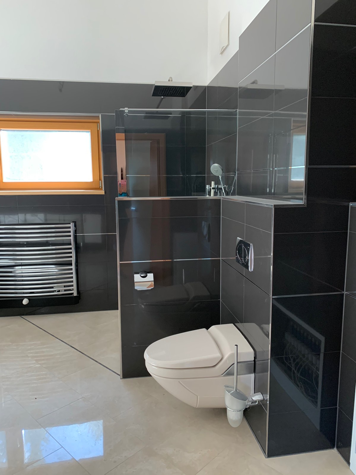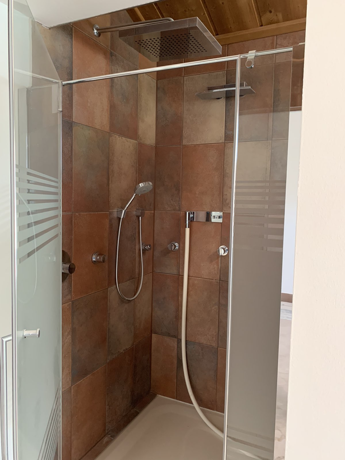 Станот е лоциран во приватна, мала зграда, расплага со 3 соби, 1 простран тоалет со џакузи и туш кабина, 1 гостински тоалет, посебен туш, 2 тераси 30м2 со прекрасен поглед на Алпите, едната тераса е погодна за летна кујна или простор за скара.