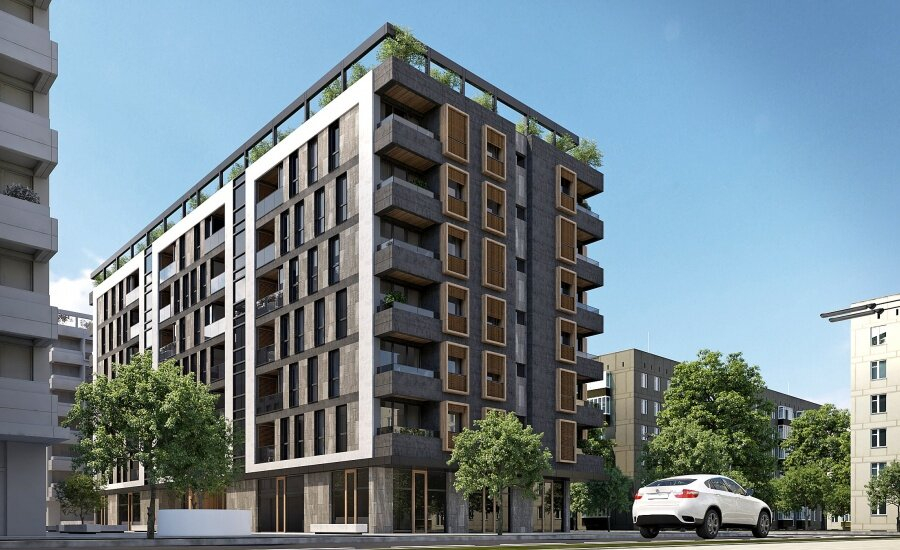 Eксклузивен стан со кровна тераса за продажба во нова и елегантна зграда во строгиот центар на градот.