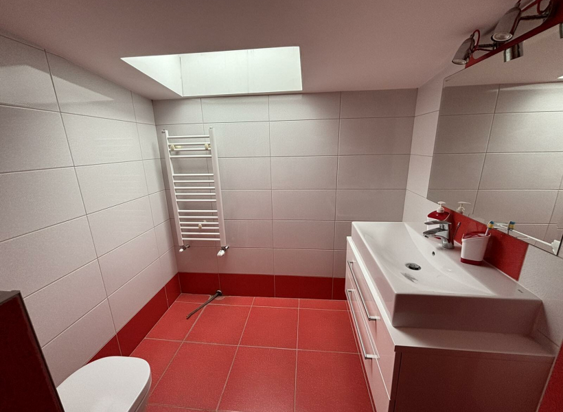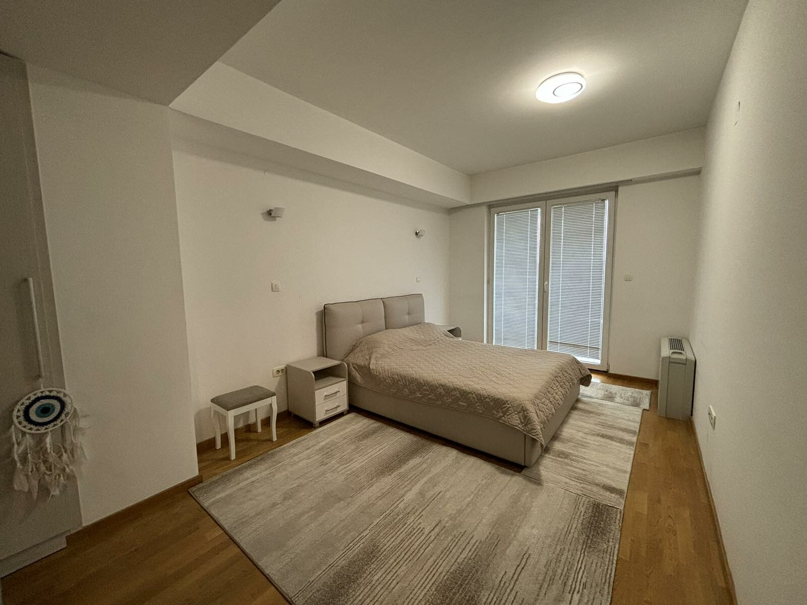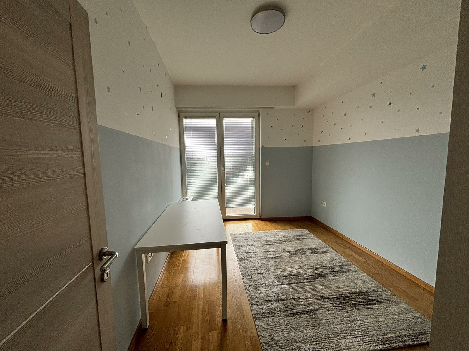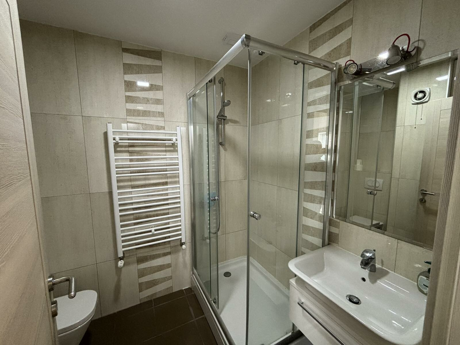 Овој простран трособен стан располага со три бањи, што гарантира комфор и приватност за секој член на семејството.