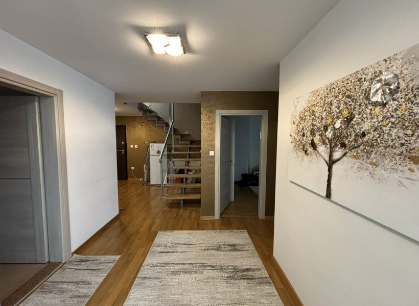 Во срцето на домот се наоѓа пространата дневна соба, идеална за опуштање и забава, која располага со излез на тераса. Терасата нуди доволно простор за уживање во утринското кафе или вечерно опуштање со поглед на градот.